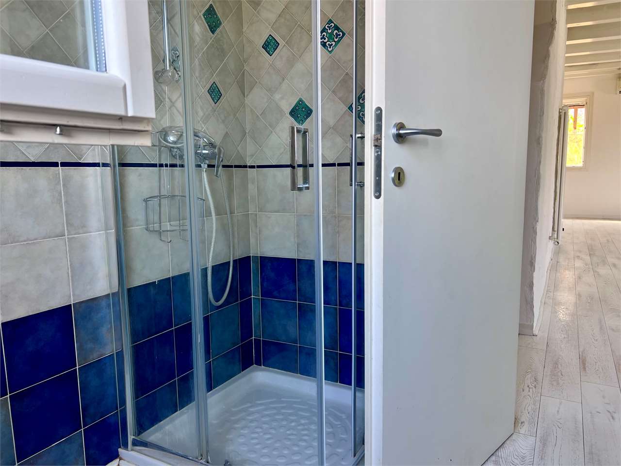 Varcando la soglia del piano terra, si viene accolti da una zona giorno open space di ben 45 mq. A servizio del piano, troviamo un bagno funzionale completo di doccia, perfetto per la vita quotidiana o per gli ospiti.