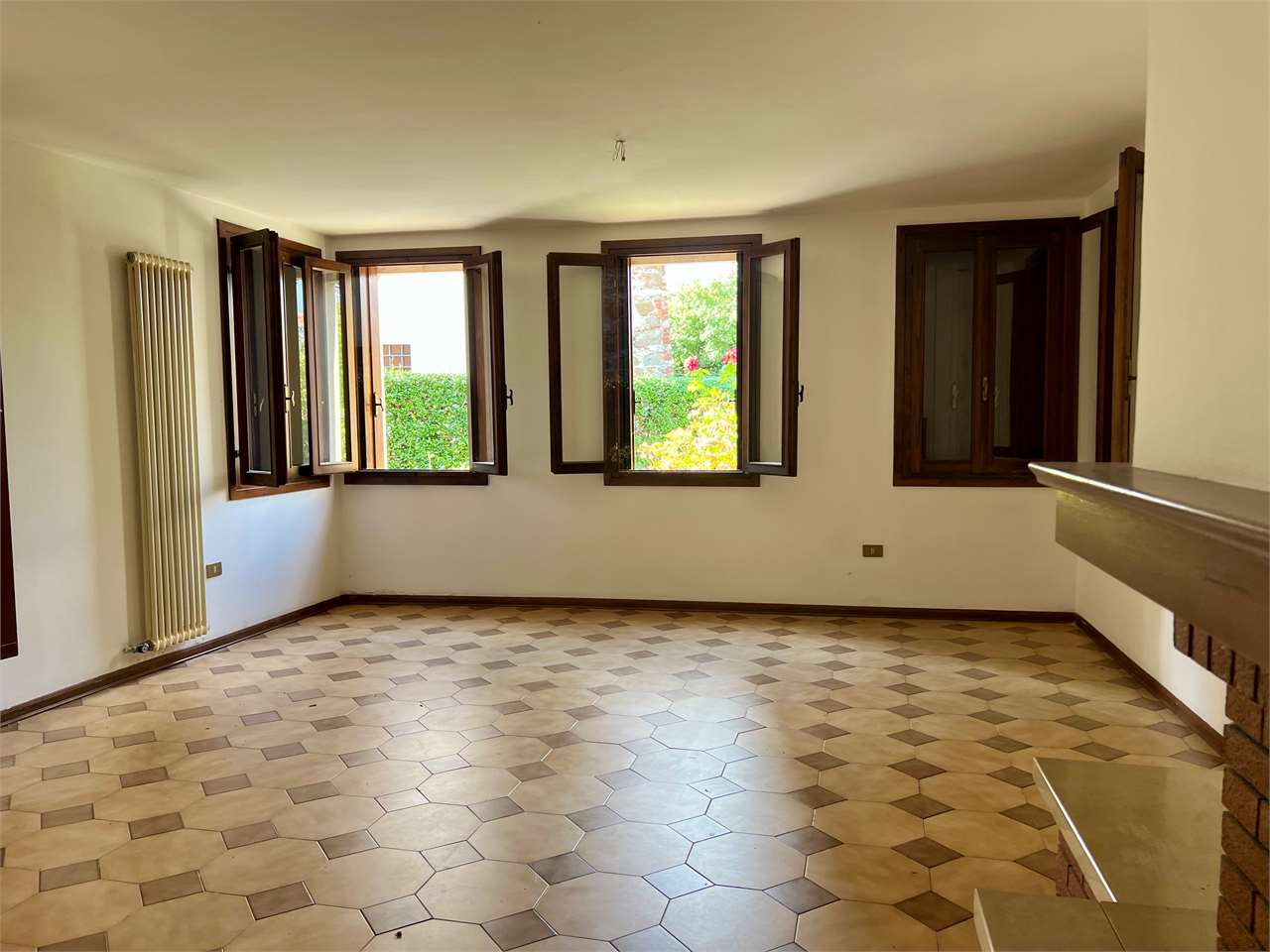 – cucina di 16 mq, spazioso soggiorno di 30 mq con camino, bagno e antibagno per un totale di 15 mq;