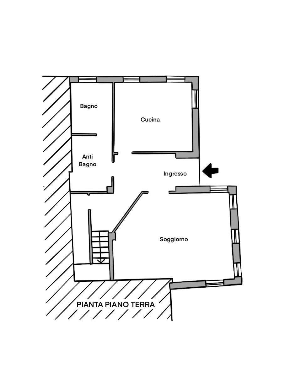 L’abitazione è stata realizzata nel 1978 e ristrutturata nel 1989, si sviluppa su quattro livelli ed è composta al piano terra da: